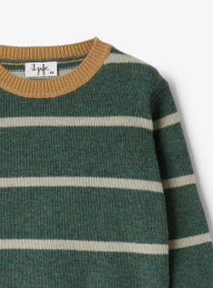 Crew neck wool sweater with a striped pattern made of extra fine merino wool and ribbed finishes.