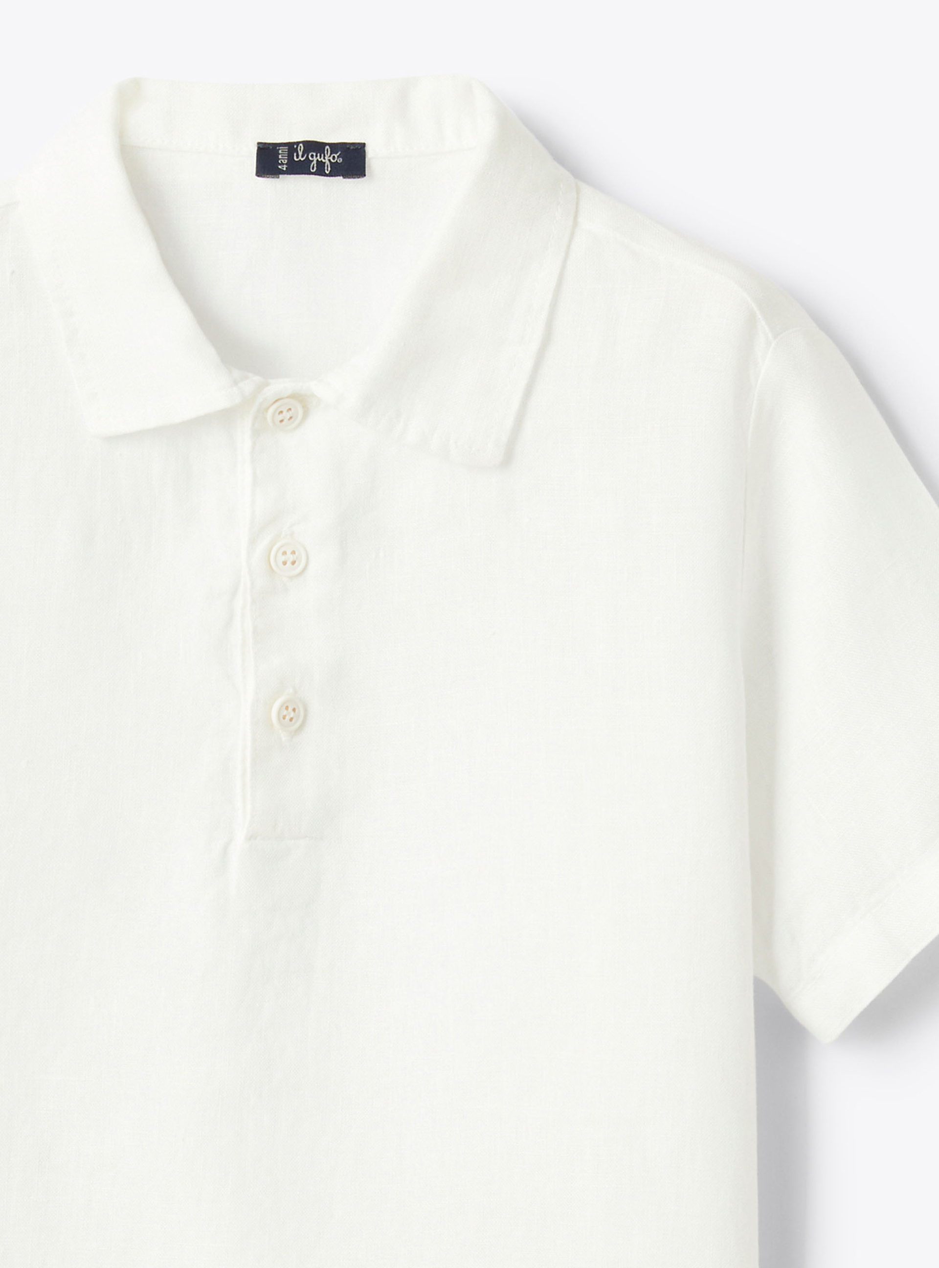 Camicia in lino a maniche corte dalla linea classica con colletto all'italiana, apertura a tre bottoni e spacchi laterali per una comoda vestibilità, ideale sia per look da cerimonia che per look casual.